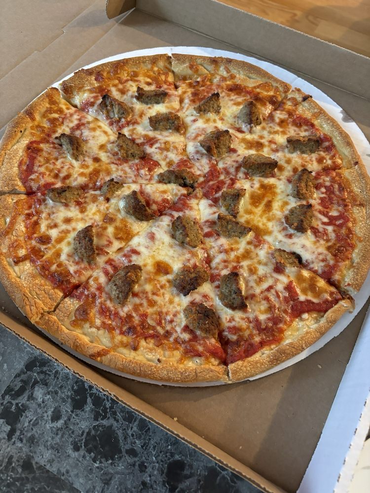 Our classic 16 inch cheese pizza topped with Hamburg, pepperoni, sausage and bacon