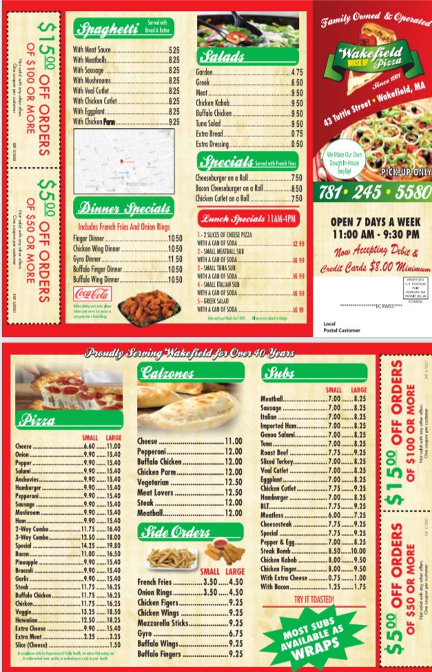 Wakefield House of Pizza Menu
